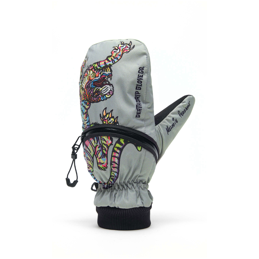 Melodie Perrault is fan and brand favorite. The Quebec born and Montreal, Canada-based artist came up tattooing friends before becoming a social media sensation and eventually leading her own apparel brand. Themes of female empowerment through a female lens are some of her most compelling. But for DEATHGRIP, it’s her use of color and illustration that have struck the beautiful balance found on her signature Ghoul mitt.