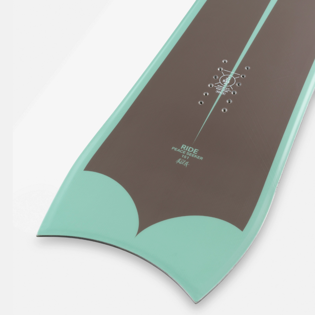 The Peace Seeker is a collaborative effort between Jake Blauvelt and their snowboard engineer. The Peace Seeker is designed to ride all over the mountain with a focus on power and drive. The unique Bi-Radial sidecut design offers the lightning-fast turn initiation of our pig models and the shape and construction allow for limitless support off the tail for longer more sustained turns. The longer nose shape eats up high frequency vibrations and keeps the nose floating above powder and chop at top speed. Glass Pedal construction and tail design helps to squeeze every last drop of power out of your turns. Forget what you think about shorter snowboards and prepare to have your mind blown. This board is exactly what you’d expect from Jake, fast precise and smooth.