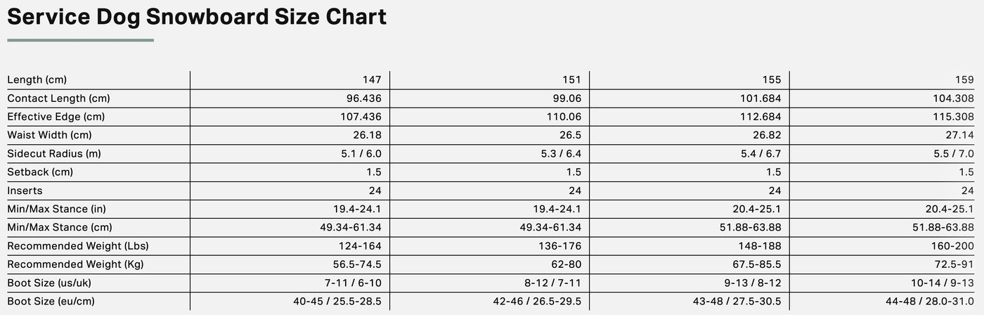 Completely overhauled for the 25/26 collection, the Service Dog is an all-mountain beast. With a new volume displaced design, 3D nose and Directional Double Kick in the tail to help with stability in variable conditions, the Service Dog is a new breed of party boardin’ powder hound.
